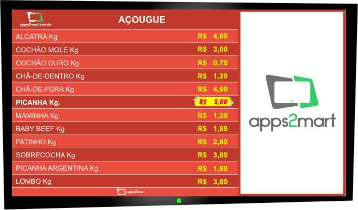 A plataforma Apps2mart possui 4 grandes diferenciais de destaque: a versatilidade da solução com sua variedade de recursos embarcados que possibilitam a utilização das telas de TV em diversas aplicações, como Tabela de Preços, Cardápio Digital, Display de Ofertas, Mural Digital, MOOH, Endomarketing, Sinalização e exibição online de fotos do Instagram. Você pode utilizar uma ou até combinar todos estes recursos em uma mesma tela de TV, proporcionando um meio de comunicação com os consumidores bem limpo e eficiente.