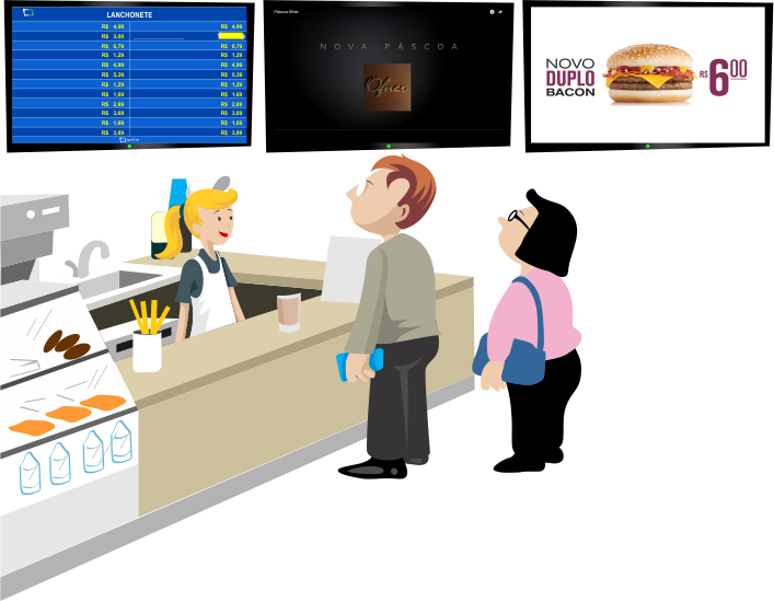 É muito simples. Depois de instalada, por Wi-Fi o conteúdo pode ser alimentado manual ou automaticamente quando integrado ao sistema da sua loja. Controle tudo via internet e com apenas um click crie instantaneamente suas ofertas e promoções com fotos, descrições e preços e/ou exiba uma lista de preços dos itens comercializados, bem como altere suas ofertas apresentadas em um número ilimitado de telas de TV espalhadas em toda a sua rede de lojas.