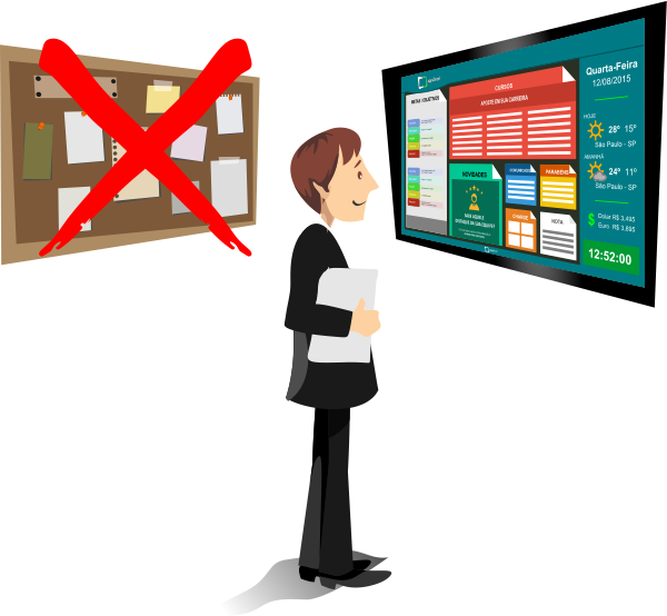 Utilize a solução da Apps2mart como Mural Digital para estabelecer um meio de comunicação eficaz, em tempo real, transmita mensagens importantes a seus funcionários espalhados em diversas localidades e ainda diminua seus custos com impressão. Aumente o comprometimento dos funcionários, a participação nas iniciativas da empresa, transmita os preceitos morais, propague mensagens que reforçam o orgulho da marca e fortaleça a cultura organizacional da empresa.